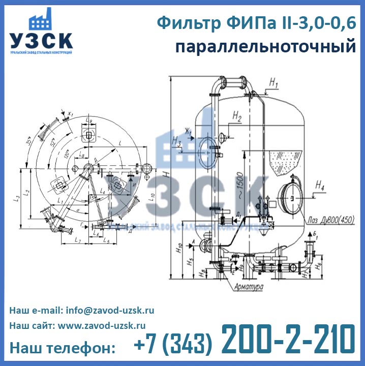 Актуальные цены на ФИПаII-3,0-0,6 в Брянске Вы можете уточнить в отделе продаж Уральского Завода Стальных Конструкций (производитель ионитных фильтров), для этого заполните форму заказа внизу страницы.