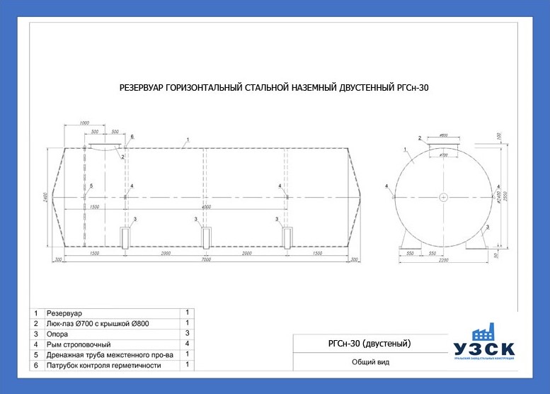 РГСДн-30: горизонтальный резервуар двустенный наземного расположения;